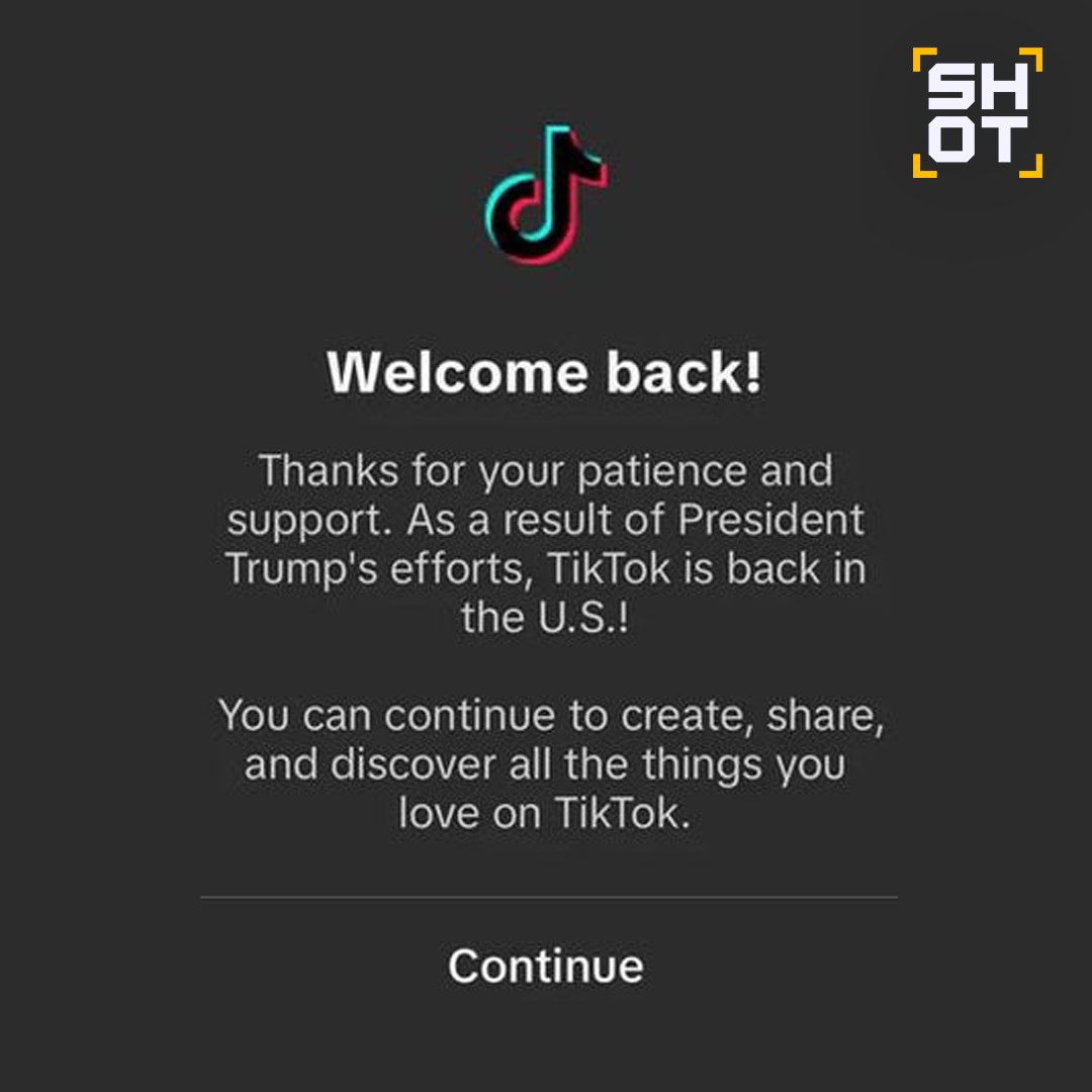 "Спасибо за ваше терпение и поддержку. Благодаря усилиям Дональда Трампа TikTok снова работает в США", — заявили в соцсети.