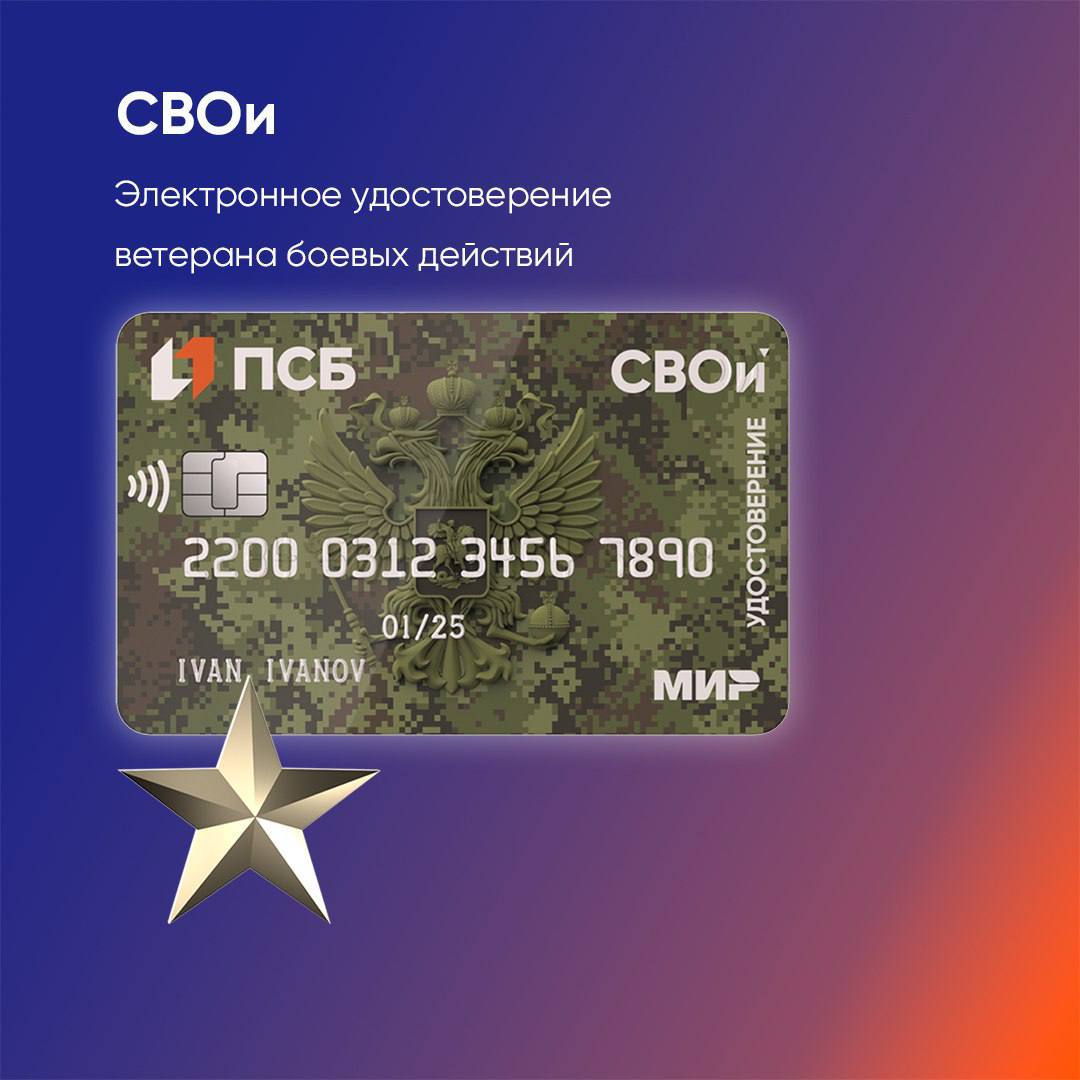 Карта «СВОи» – это одновременно и удостоверение ветерана боевых действий, и платежный инструмент. Она подходит как для начисления денежного довольствия и пенсии, так и для получения различных социальных льгот. Держатели карт могут переводить деньги без комиссии, проводить операции с наличными в банкоматах любых банков и оплачивать покупки онлайн. ПСБ также предлагает ряд дополнительных опций, таких как повышенный кешбэк и скидки от партнеров.