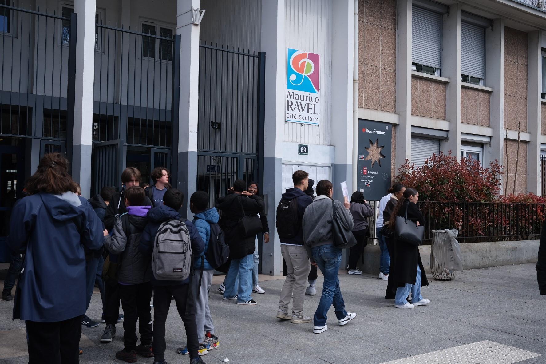 Des élèves qui s'agitent devant les grilles, galvanisés par la présence médiatique, et des enseignants mutiques qui se faufilent le regard las. Ce mercredi 27 mars, quelques heures seulement après l'annonce du départ du proviseur du lycée Maurice-Ravel pour «raison de sécurité», deux atmosphères s'opposent devant cet établissement public du 20e arrondissement de Paris.