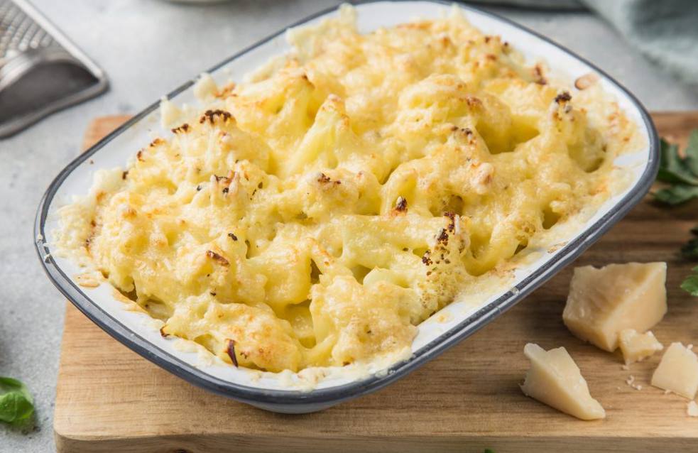1․ Разогрейте духовку до 175 °С. Капусту разберите на небольшие соцветия и отварите в кипящей подсоленной воде за 5–6 минут. Откиньте на дуршлаг и немного остудите.