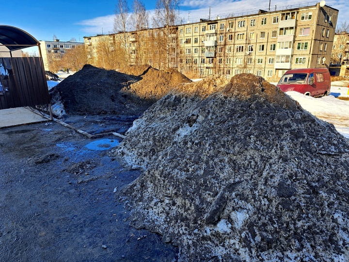 «В Пограничном сквере во многих местах уборочной техникой нещадно повреждён и разворочен почвенный слой, устроены огромные свалы снега, загрязненного противогололедными материалами, реагентами и бытовым мусором», - говорят авторы обращения в группе «Подслушано в ПТЗ | Петрозаводск».