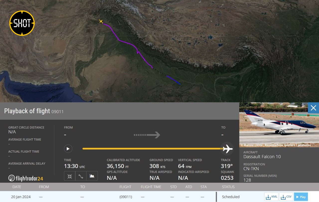 По данным SHOT, авиакатастрофа произошла вчера вечером в горах афганской провинции Бадахшан. Бизнесджет с бортовым номером RA-09011 следовал по маршруту Гая (Индия) – Ташкент (дозаправка) – Жуковский (Москва). По нашим данным, около 19:00 экипаж сообщил диспетчеру об аварийном остатке топлива, пилоты приняли решении о посадке на аэродроме Куляб (Таджикистан). В 19:30 сообщили об отказе двигателей, после этого Falcon пропал и потерпел крушение в горах Афганистана.