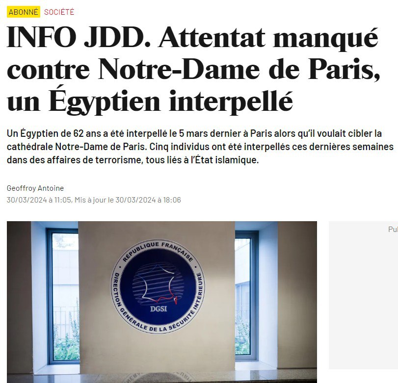 Сотрудники внутренней разведки Франции выяснили, что 62-летний гражданин Египта поддерживал контакт с «Исламским государством»* и планировал совершить теракт в соборе Парижской Богоматери.