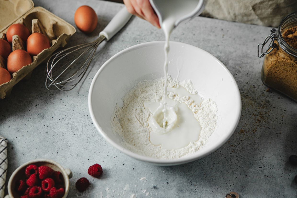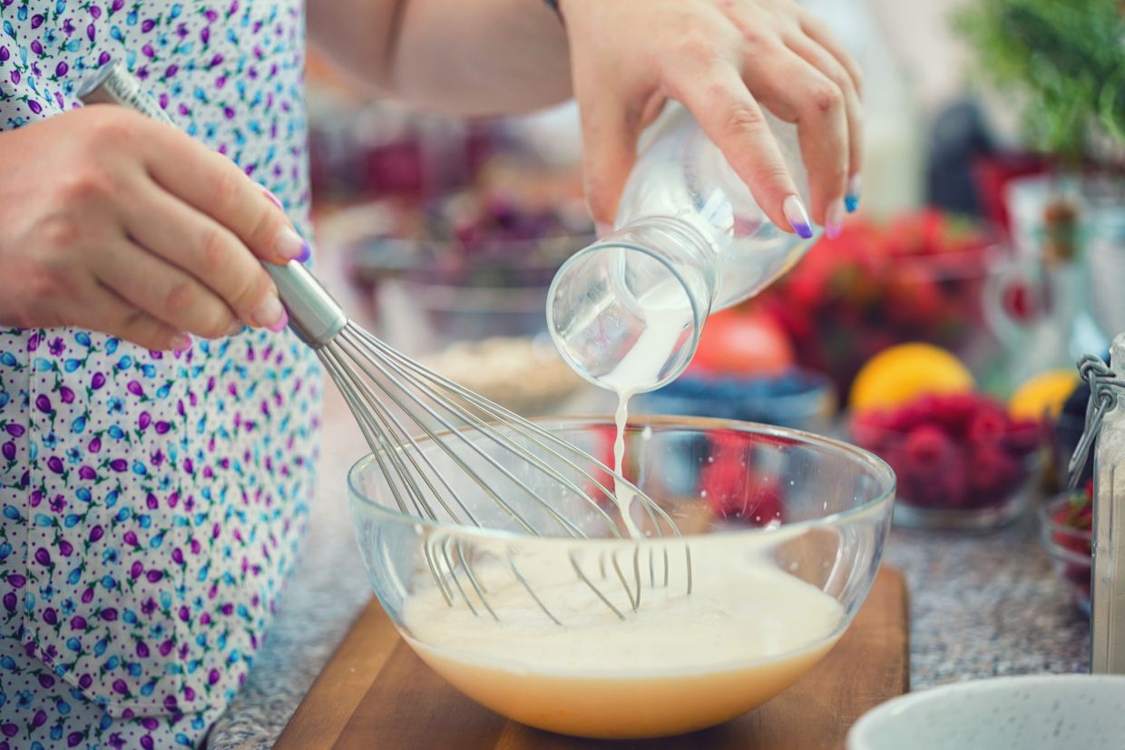 Основные ингредиенты (мука, яйца, молоко) менять не нужно. Во-первых, они сами по себе полезные, во-вторых, если что-то убрать, получатся уже не блины, а разновидность ПП-панкейков. Единственное, что можно поменять – использовать менее калорийные версии продуктов. Например, овсяную муку или растительное молоко.