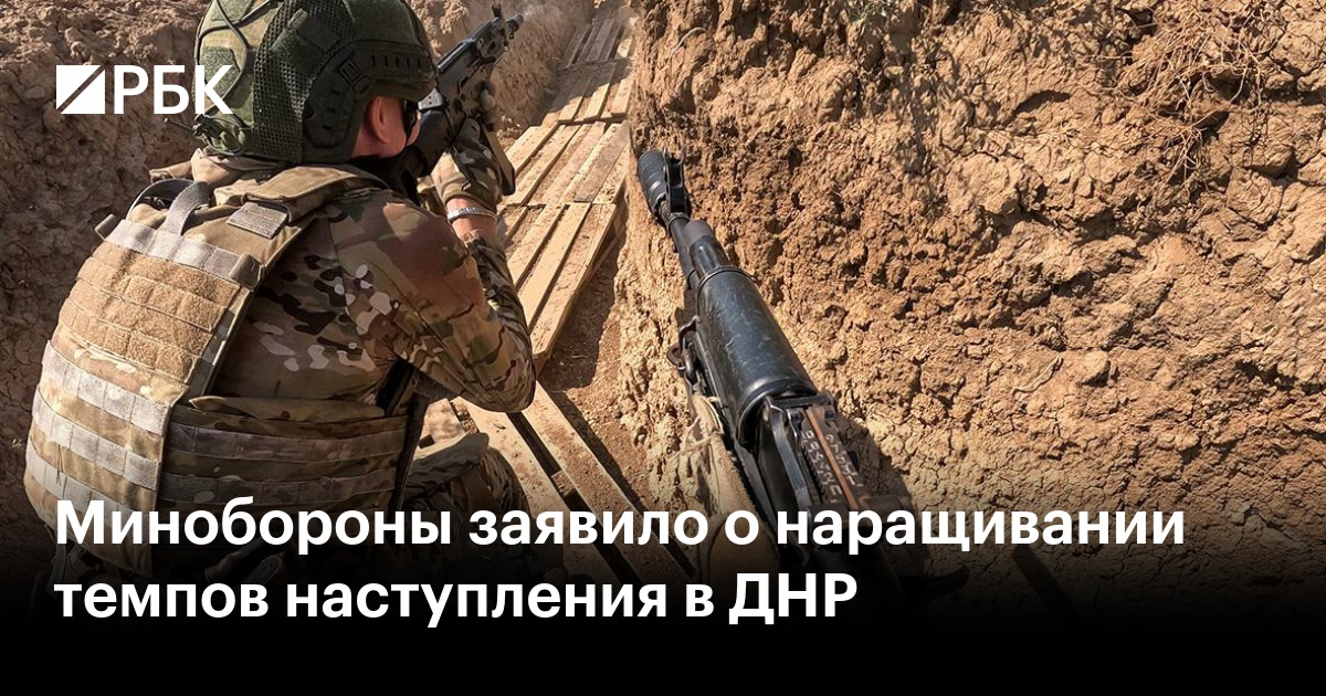 Российские войска нарастили темпы наступления на донецком направлении, заявляет Минобороны.