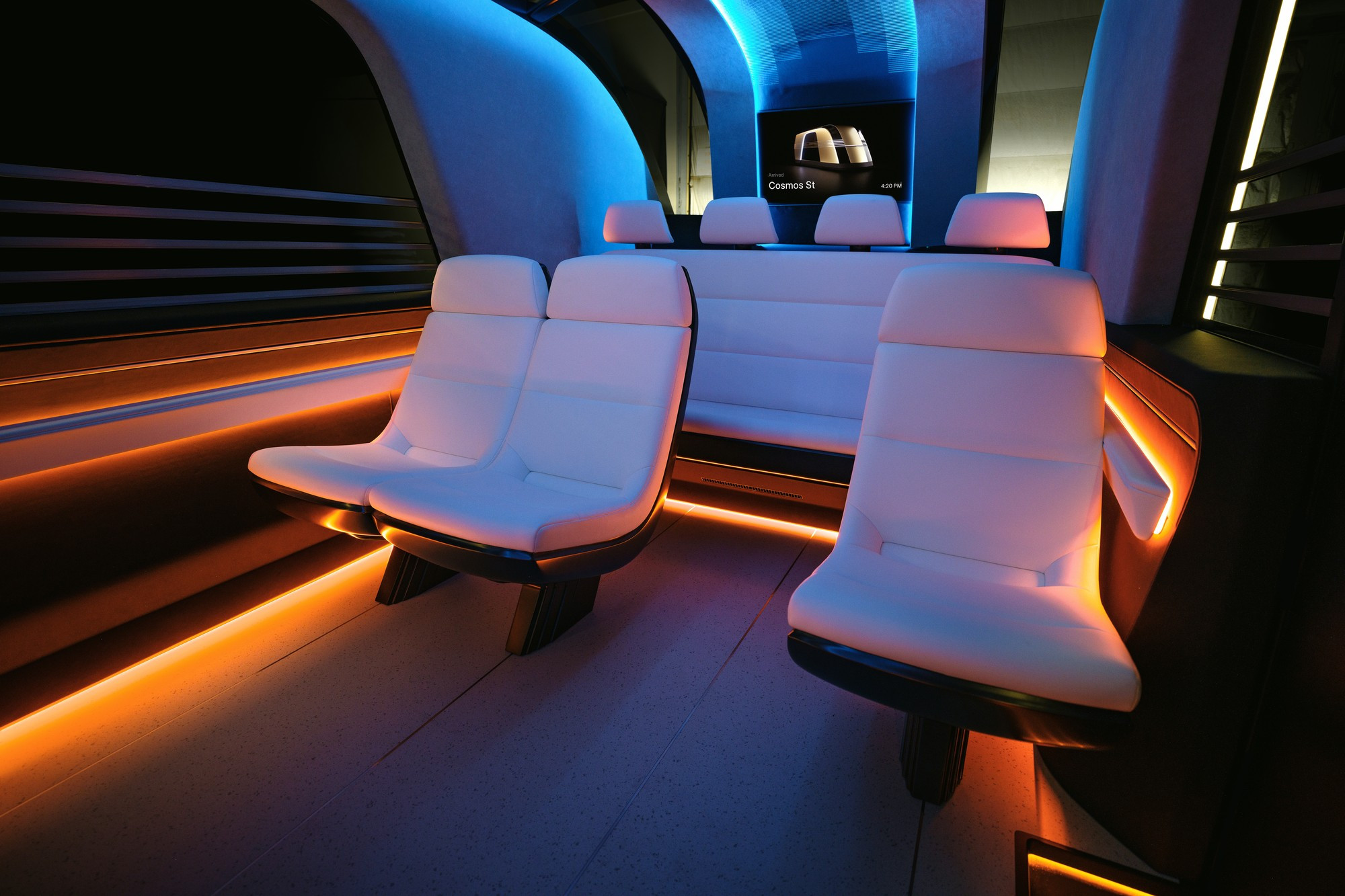 Посадка и высадка происходят через автоматические сдвижные боковые двери. В салоне прототипа 14 мест, хотя Илон Маск пообещал до 20 человек в одном автобусе — возможно, имеются в виду версии со стоячими местами или вместимость с учётом размещённых в центральной части салона кресел-колясок. В передней и задней частях салона имеются встроенные в стенки телевизоры, но размещены они низковато, головы высоких пассажиров или пассажиров с головными уборами будут их перекрывать. Ручную кладь можно взять в салон, а для крупногабаритных чемоданов есть отделённые от салона багажные отсеки в передней и задней частях автобуса.