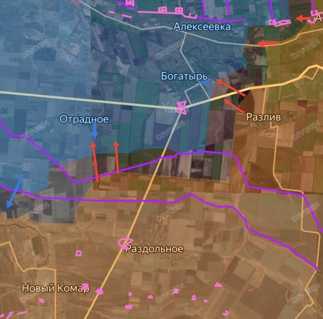 Продолжается продвижение подразделений дальневосточников в направлении Отрадного с юго-востока и южнее. За сутки наши подошли к Отрадному с юга по посадкам. Противник здесь предпринял попытку контратаковать с севера на юг силами до отделения на БМП "Брэдли". ВСУ отработали по нашему переднему краю БПЛА и бросили в контратаку штурмовиков. БМП и 6 пехотинцев уничтожены расчётами БПЛА, выжившие пехотинцы откатились в исходное положение.