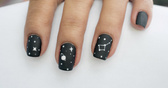 Мастер может предварительно покрыть ваши ногти цветным лаком и при помощи трафаретов нанести сверху изображения звезд разного размера. Например, звездам из серебряного глиттера хорошо подойдет черный или белый лак. Не бойтесь экспериментировать!