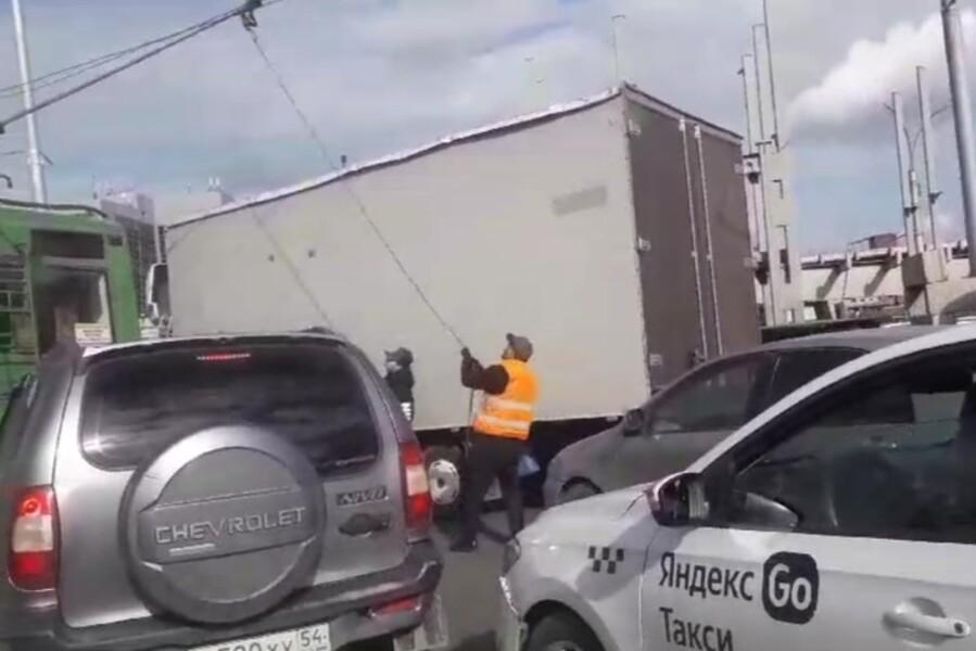 По словам мужчины, ДТП произошло примерно три часа назад, однако дорожная ситуация до сих пор не выправилась. На этом участке легковушка врезалась в фургон. Троллейбус попытался объехать аварию, но сам стал заложником ситуации — его рога запутались в проводах.