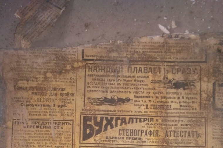 Житель Перми при разборке потолка обнаружил газеты, датируемые еще 1914 годом. Часть листов неплохо сохранилась и можно прочитать, что рекламировали в прессе более 100 лет назад. Как отмечает автор поста во «ВКонтакте» паблика «Подслушано Пермь», в некоторых объявлениях рекламировали лже-лекарства.