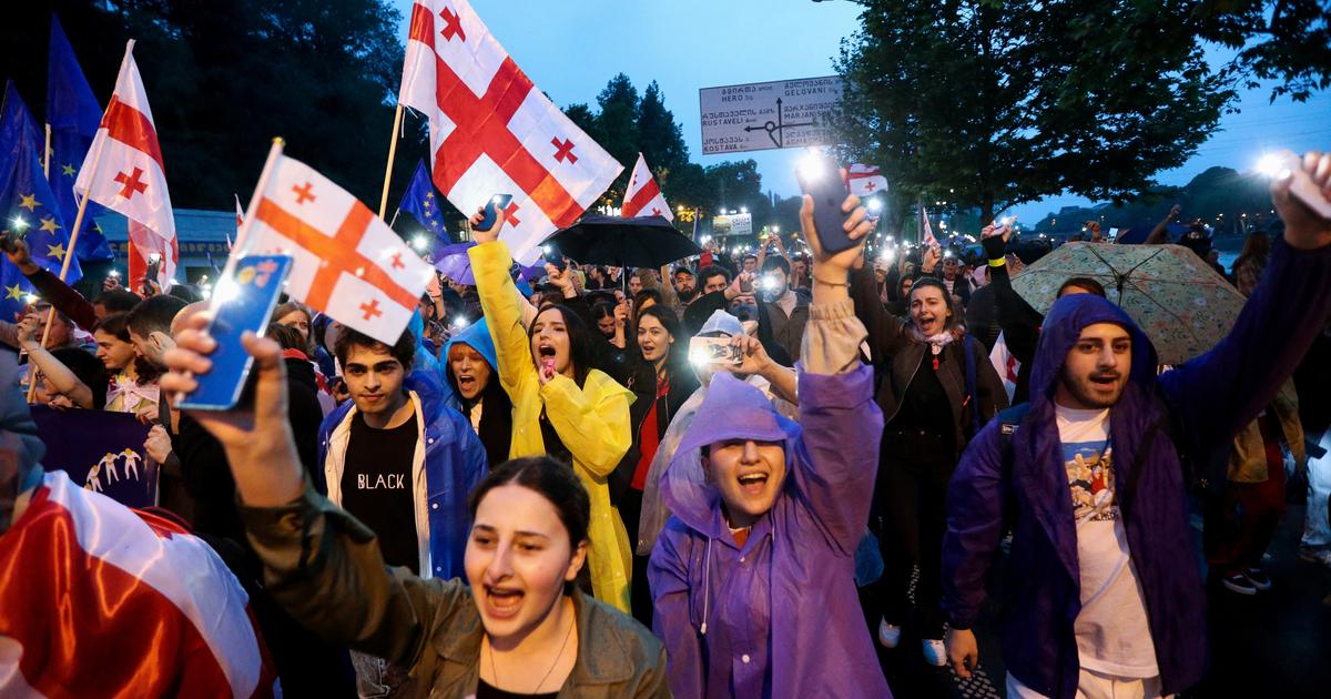 Dans la foule, qui convergeait vers la place de l'Europe, des manifestants arboraient les drapeaux de la Géorgie et de l'Union européenne, que Tbilissi dit vouloir rejoindre, malgré ce texte que ses détracteurs jugent similaire à une législation russe utilisée contre l'opposition.