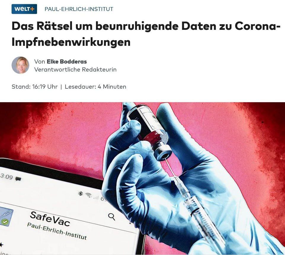 Если экстраполировать эти данные на всю вакцинированную популяцию, то в Германии может быть более 300 000 человек с подозрением на тяжелые побочные эффекты вакцинации. Насколько надежны данные PEI — неизвестно, но они однозначно указывают на то, что количество побочных эффектов от вакцины было значительно выше, чем предполагалось изначально.