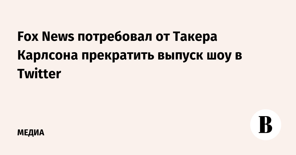 Американский телеканал Fox News направил своему уволенному в апреле экс-ведущему Такеру Карлсону письмо с требованием прекратить выпуск собственного шоу в Twitter, выяснил портал Axios.
