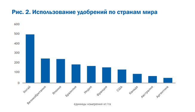 «Важная болевая точка китайской агросферы - низкое качество сельхозпродукции. Технологии селекции сельхозкультур и борьбы с вредителями в Китае уступают технологиям развитых стран, а по использованию пестицидов и химических удобрений Китай занимает одно из первых мест в мире. Потребление химических удобрений в расчёте на гектар пахотных земель в 2 раза больше, чем в Великобритании, в 3,6 раза больше, чем в США, и в 10 раз больше, чем в Аргентине. Чрезмерное использование химических удобрений и пестицидов усугубляет экологические загрязнения, вызванные урбанизацией и индустриализацией, что приводит как к деградации земель, так и к низкому качеству китайской сельхозпродукции».