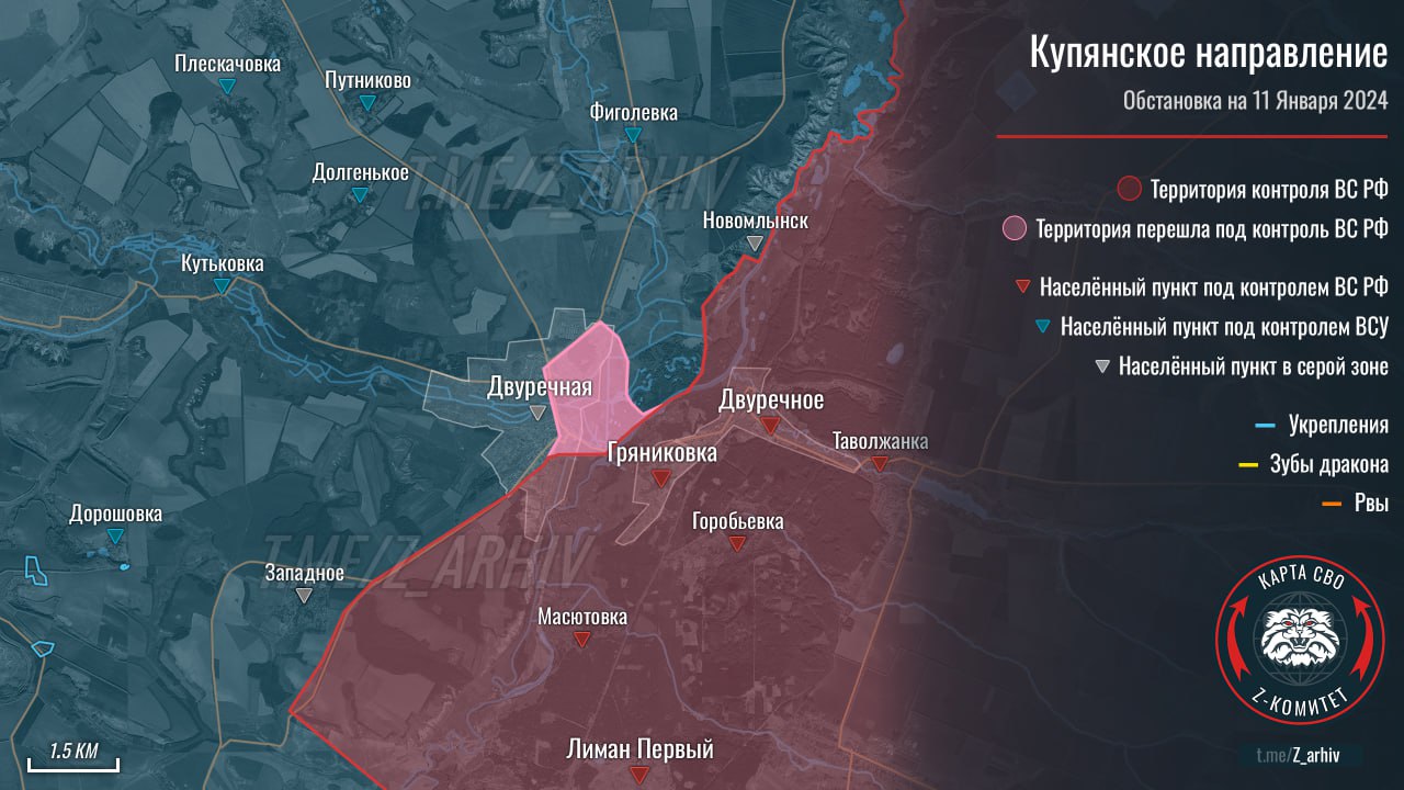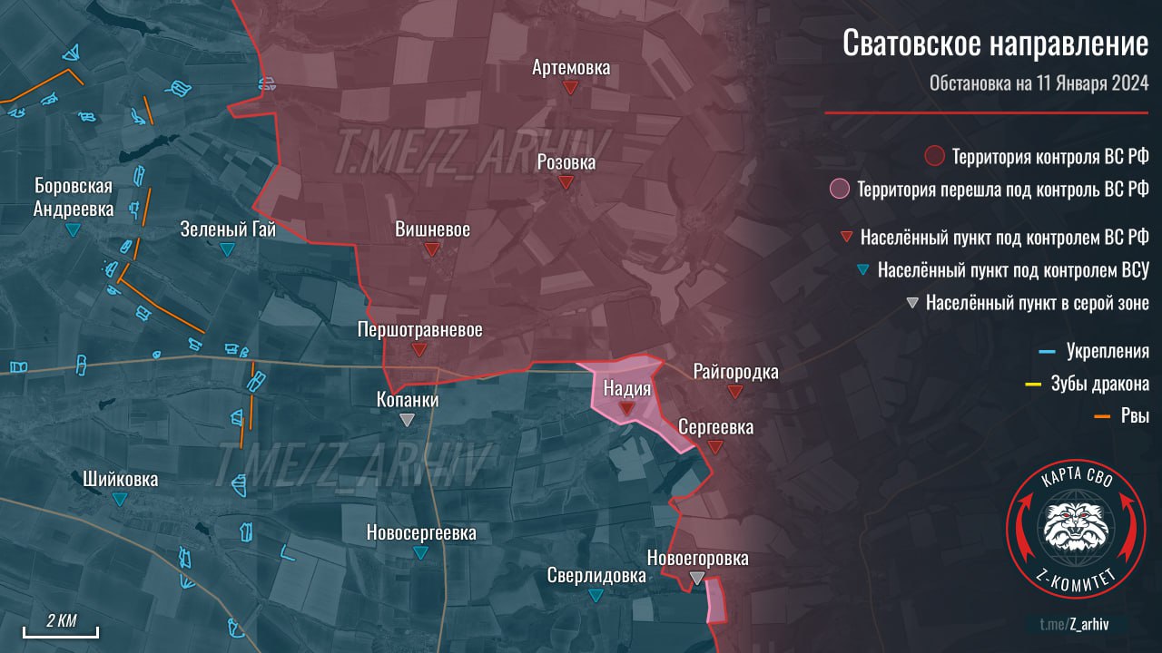 3. На Сватово-Купянском направлении ВС РФ расширили зону контроля в районе Надии (Надежда). Также давим в районе Макеевки (на высотах) и в районе Загрызово.