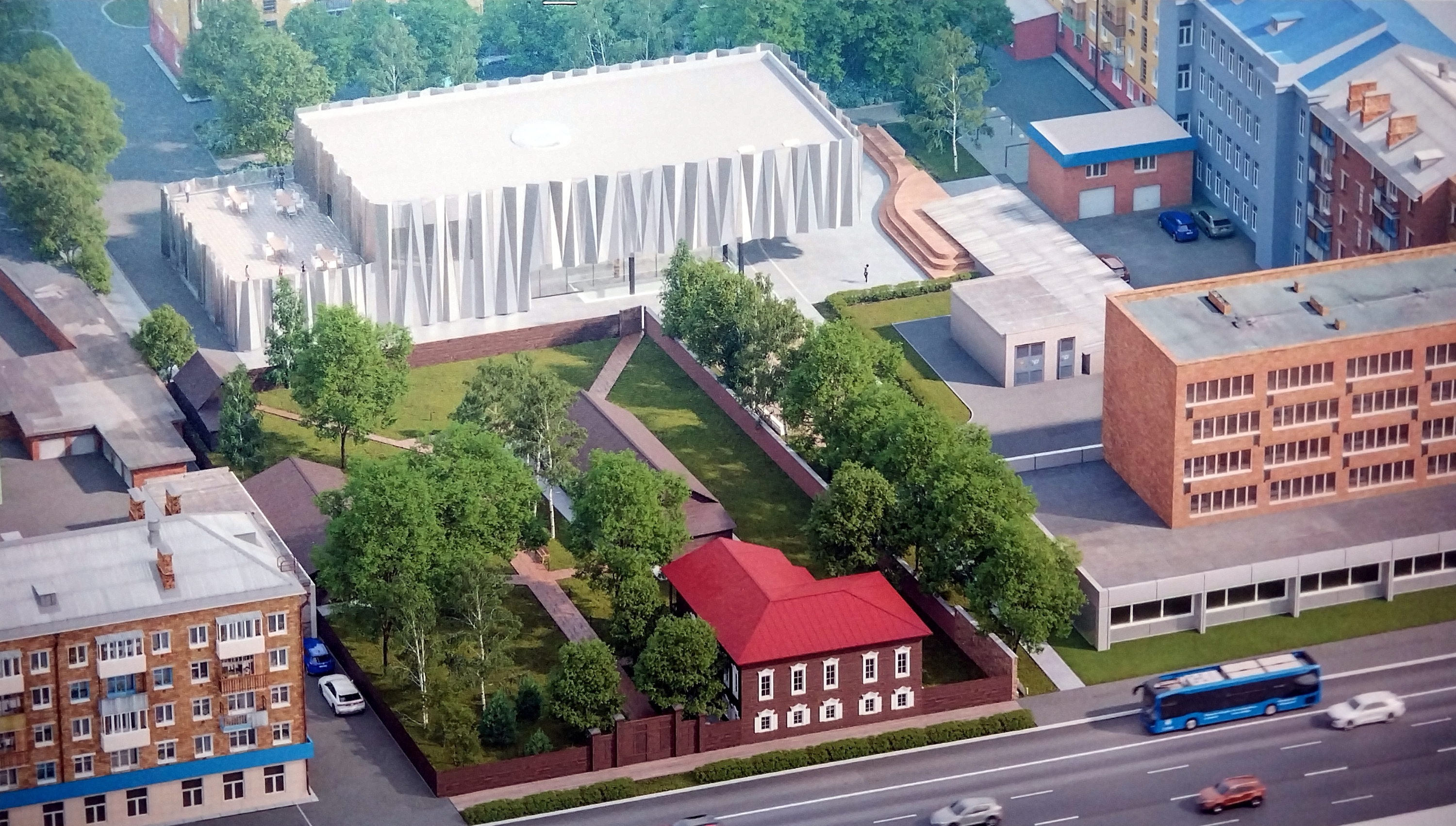 Стало известно, как будет выглядеть «Суриков-центр», который планируется построить позади музея-усадьбы В. И. Сурикова в районе пересечения Ленина и Кирова.