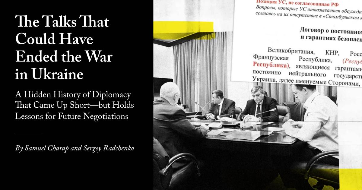 Кроме того, такие прямолинейные и однобокие объяснения полностью скрывают факт, который в ретроспективе кажется удивительным: в разгар конфликта россияне и украинцы почти завершили работу над соглашением, которое должно было положить конец войне и предоставить Украине многосторонние гарантии безопасности, одновременно проложив путь к её постоянному нейтралитету и — в перспективе — к членству в ЕС.