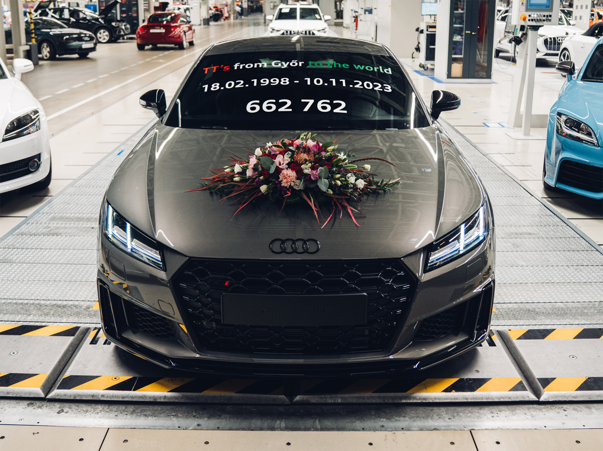 Производитель в феврале 2023 года рассказал о том, что выпуск Audi TT будет прекращен после того, как с конвейера сойдут все двухдверки лимитированной серии Final Edition. Теперь это произошло: в компании решили показать последний экземпляр завершившего 25-летнюю карьеру Audi TT, снимки были размещены в соцсетях бренда. Торжественное мероприятие, на которое «пригласили» предшественников актуального TT, прошло на заводе Audi в Дьере (Венгрия).