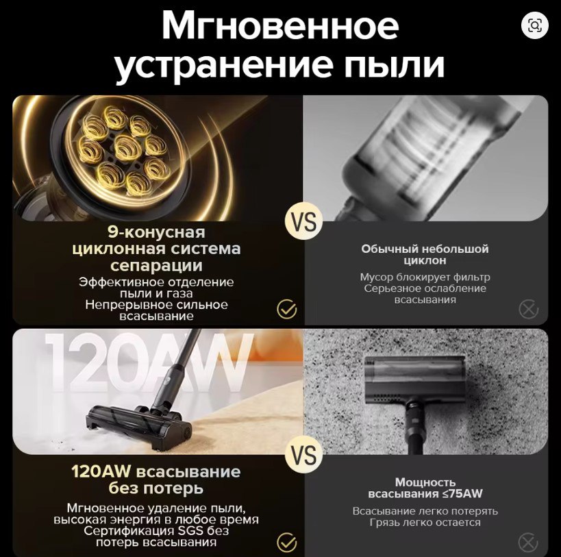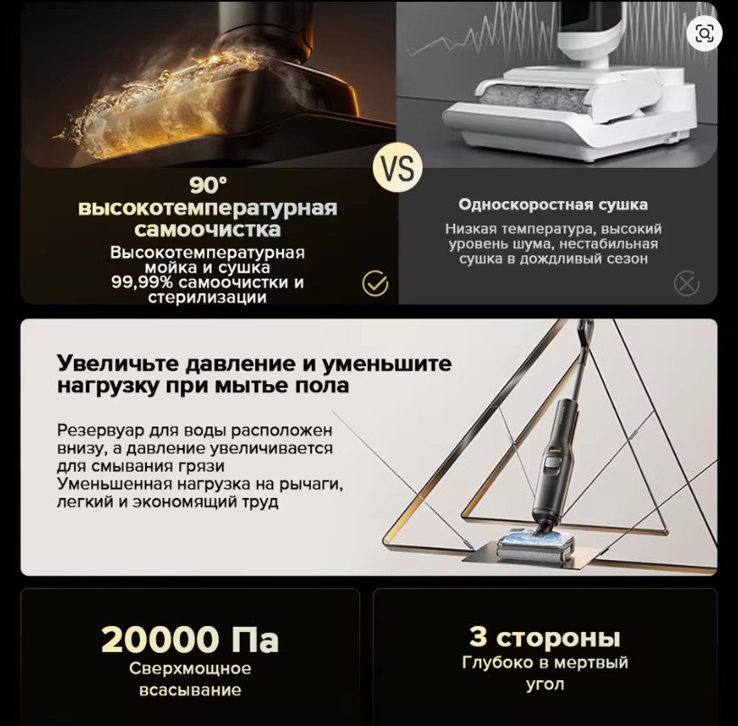 💨 20000 Па мощное всасывание — легко справляется с любым мусором