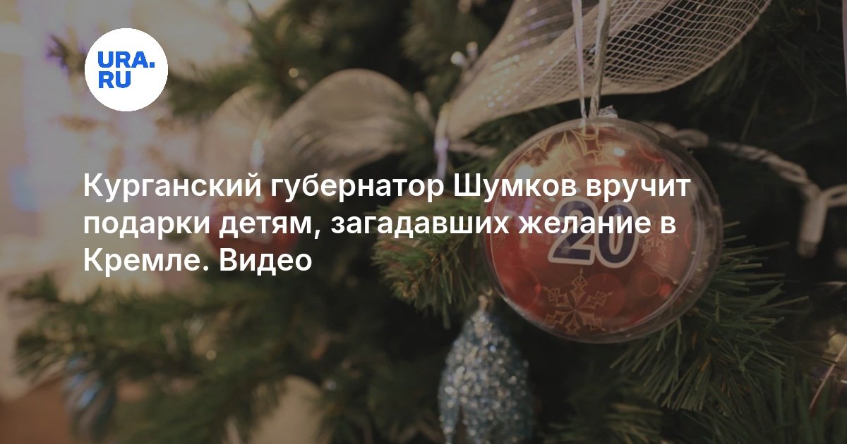 Губернатор Курганской области Вадим Шумков снял шары с «Елки желаний» в Кремле. Главе региона вручит подарки трем детям: двум землякам и одному из подшефного Краснодона (ЛНР). Об этом передает корреспондент URA.RU.