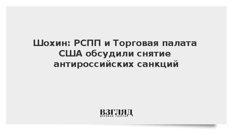 Российский союз промышленников и предпринимателей (РСПП) обсудил с Торговой палатой США перспективы снятия санкций, акцентировав внимание на авиационной отрасли и банковской системе, сообщил глава союза Александр Шохин.