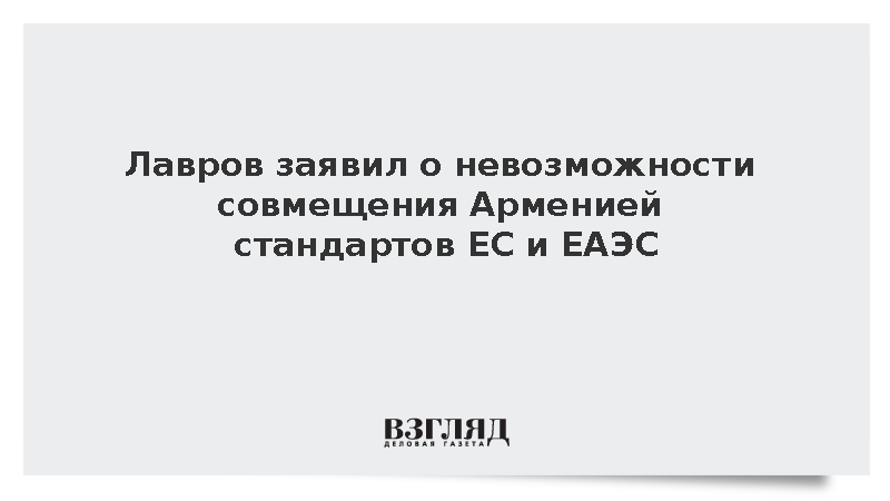 Лавров заявил о невозможности совмещения Арменией стандартов ЕС и ЕАЭС
