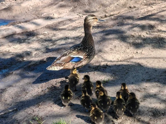 Специалисты Госохотинспекции оперативно отреагировали на вызов. Аккуратно собрав все утиное семейство, они перевезли его в безопасное место - пойму реки Рпень, где утки смогут спокойно жить без угрозы со стороны транспорта.