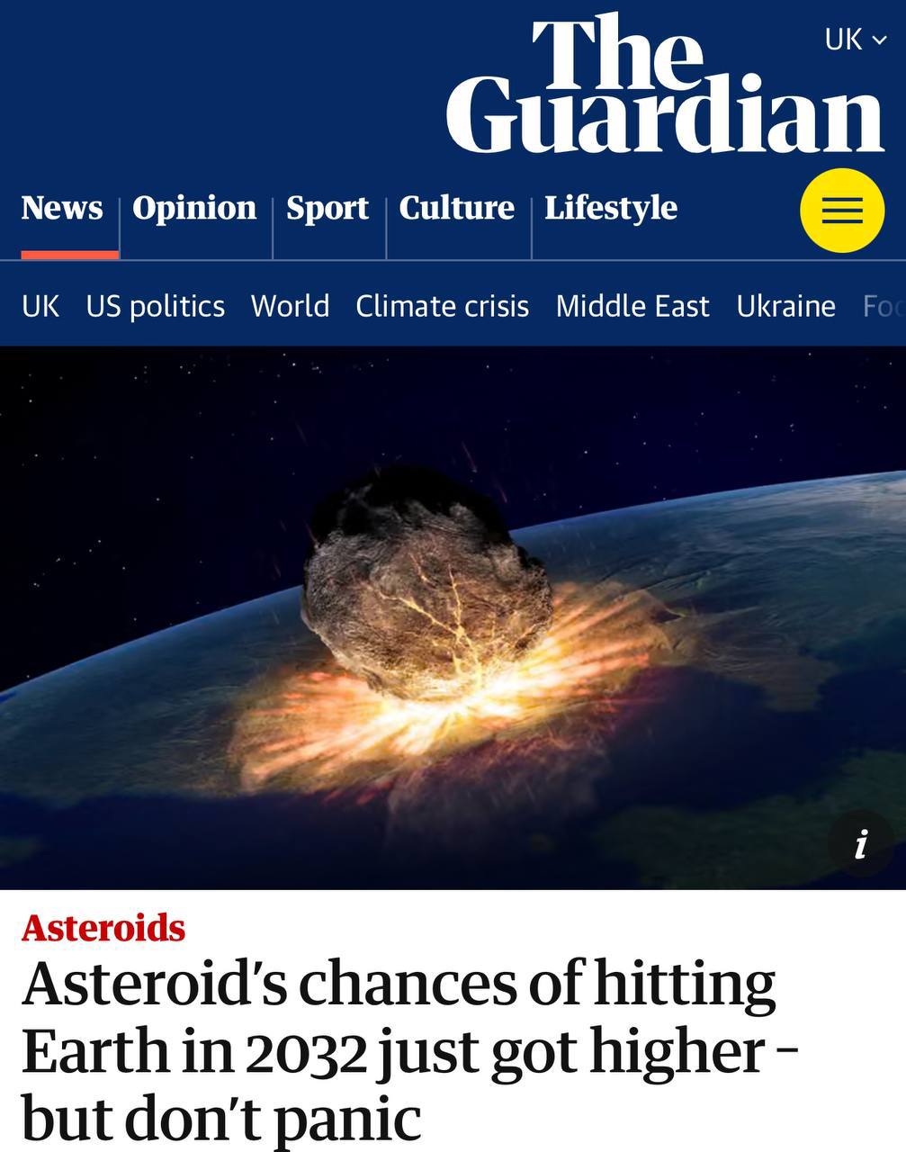 Еще в декабре этого года вероятность была равна 1,3%. Глыбу шириной около 90 метров (примерно с футбольное поле) обнаружила чилийская станция в конце 2024 года.