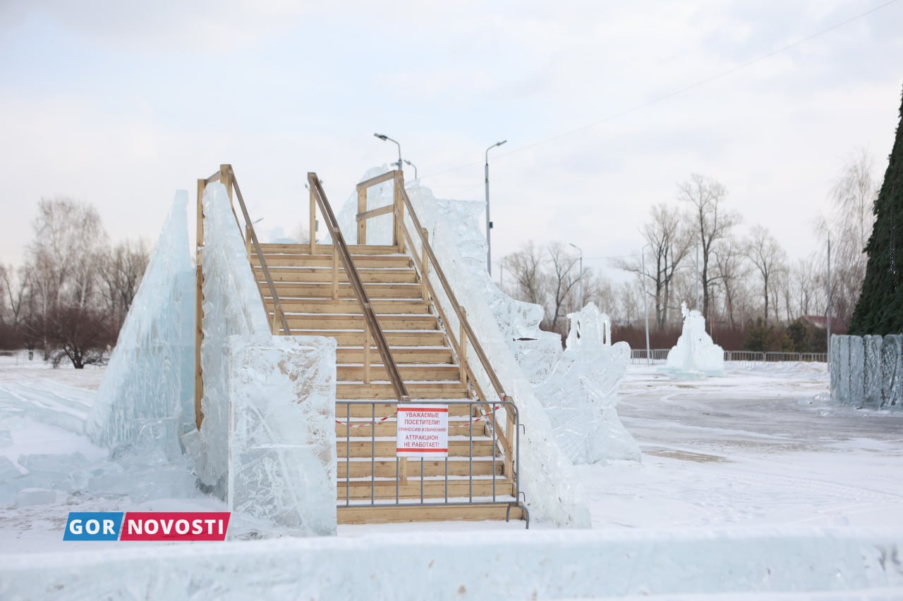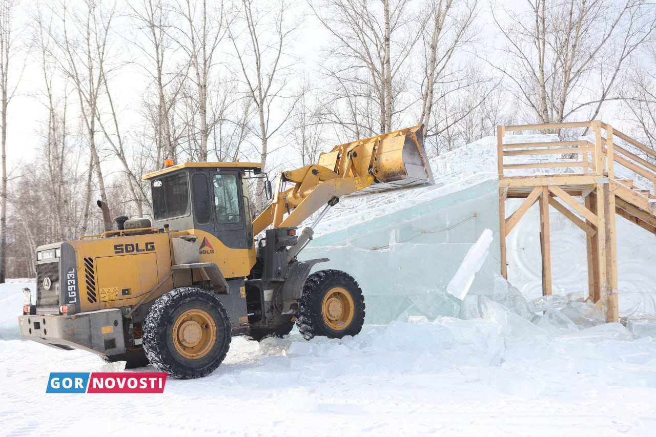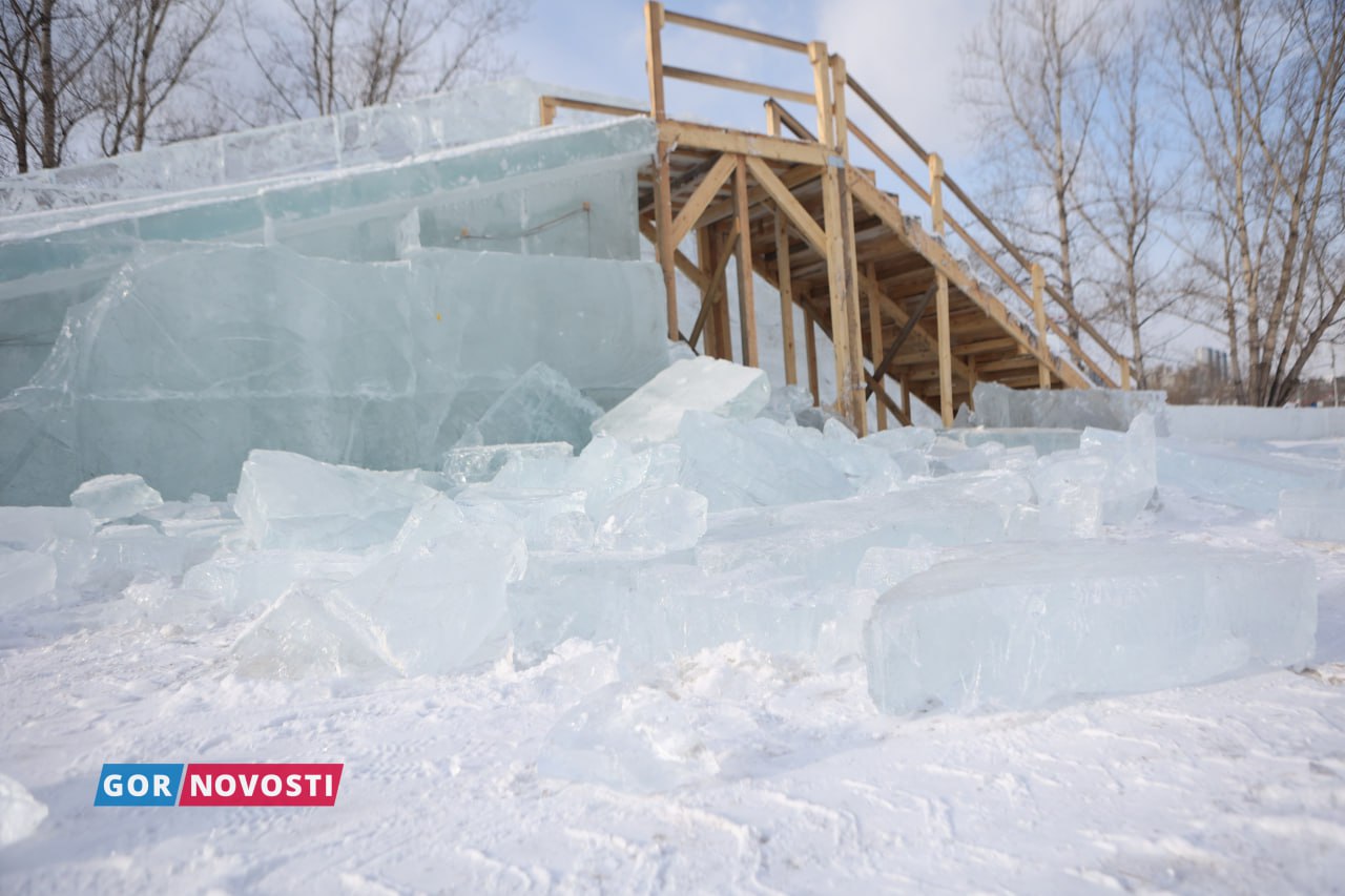 Горки и фигуры частично растаяли в субботу, когда в краевой столице была плюсовая температура. Восстановить ледовые конструкции уже невозможно. Поэтому приступили к их сносу. За этим процессом понаблюдал фотограф Gornovosti Михаил Шуклин.