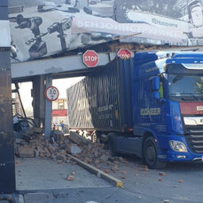 Фото с места происшествия очевидцы размещают в социальных сетях. Видно, что виадук сильно повреждён. На земле повсюду валяются выбитые фурой куски кирпича. На месте работают сотрудники ГИБДД. Отчётливо видны знаки, предупреждающие водителей о том, что здесь допустима высота транспорта до 3 метров.