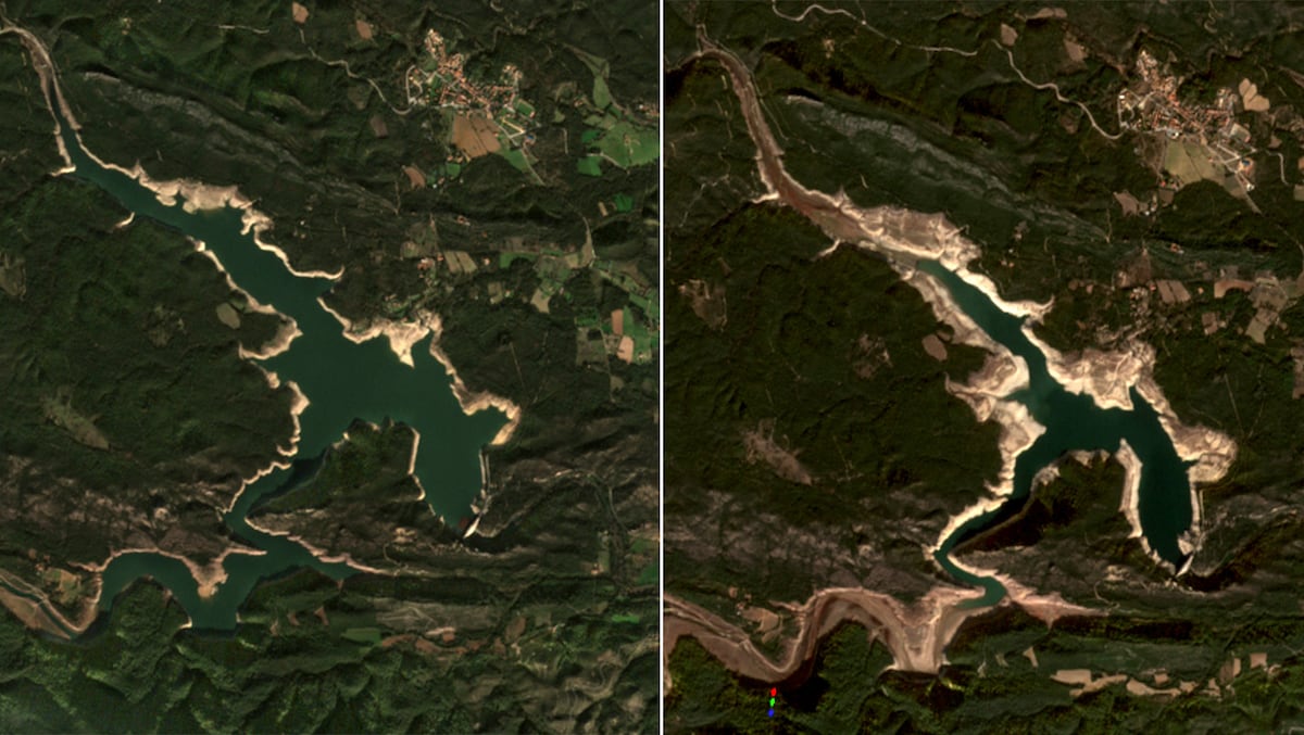El sistema Ter-Llobregat, formado por los cinco embalses de Sau, Susqueda, La Baells, Llosa del Cavall y Sant Pons, se encuentra al 16,3% de su capacidad. En octubre de 2017, las reservas se encontraban al 56%, como se puede comparar en las siguientes imágenes.