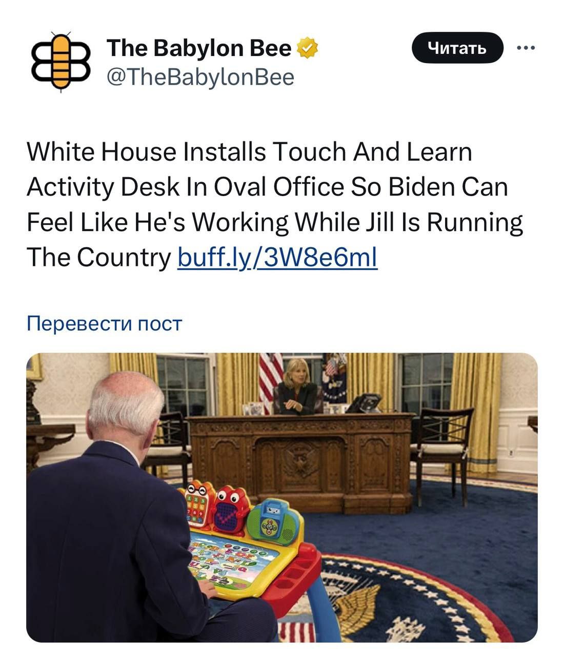 «Белый дом установил в Овальном кабинете стол Touch And Learn, чтобы Байден мог чувствовать, что он работает в то время, как Джил управляет страной»: Американская Панорама сообщает