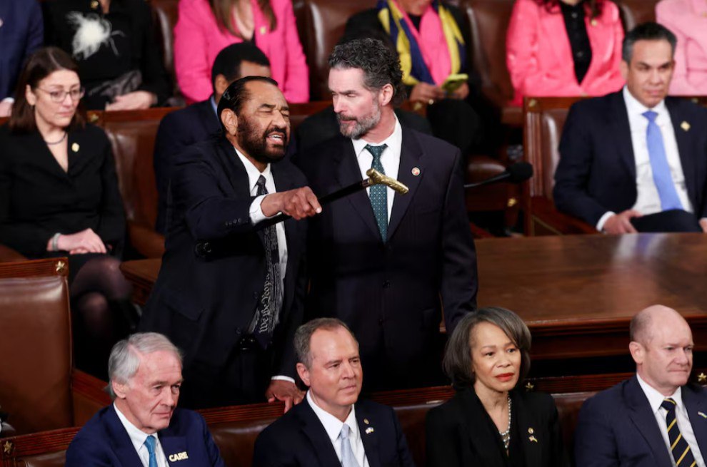 Конгрессмен Эл Грин встал и выкрикнул в адрес Трампа: «У вас нет мандата». После этого его вывели из зала.