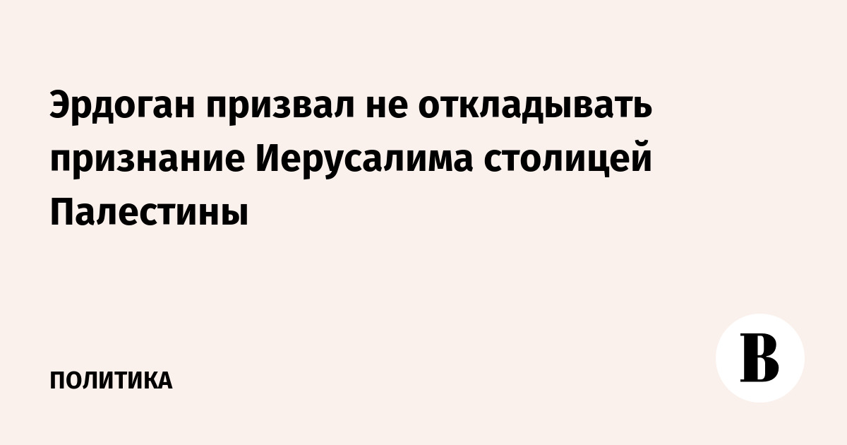 Мир на Ближнем Востоке возможен при окончательном решении израильско-палестинской проблемы, столицей Палестины должен быть Иерусалим, заявил президент Турции Реджеп Тайип Эрдоган. Об этом сообщает телеканал TRT.