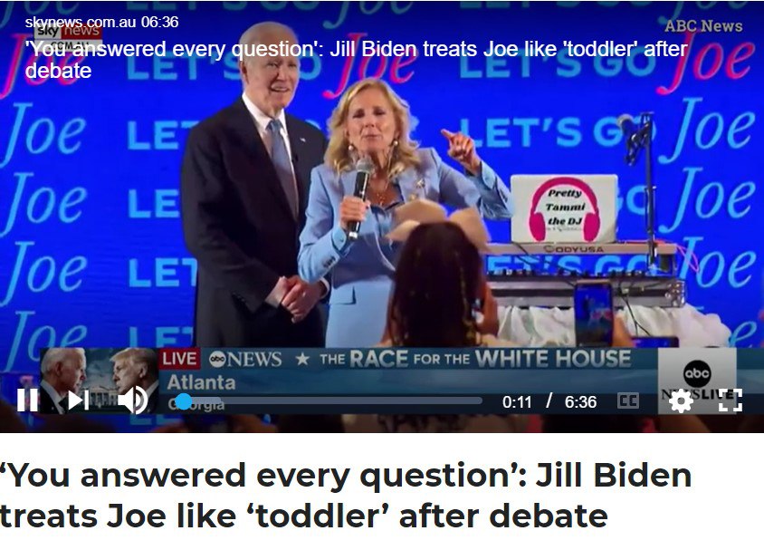 Жена Байдена поздравила его после дебатов так, как будто он ребёнок, пишет Sky News.