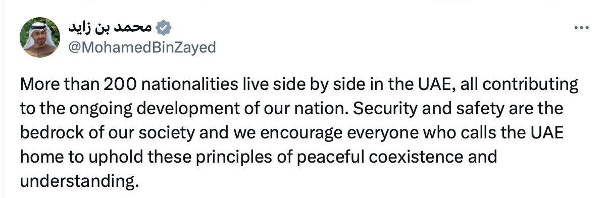 Президент ОАЭ шейх Мохамед ибн Заид призвал всех не ссориться и жить дружно.