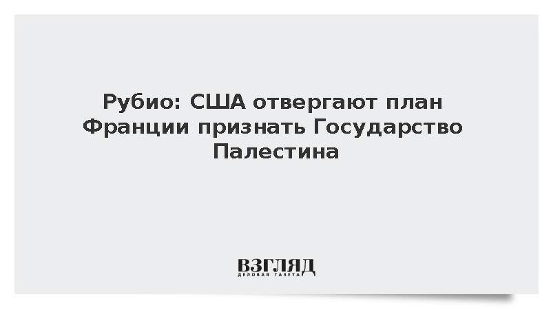 Соединенные Штаты не согласны с решением Франции признать Государство Палестина и считают это намерение безрассудным, заявил госсекретарь США Марко Рубио.