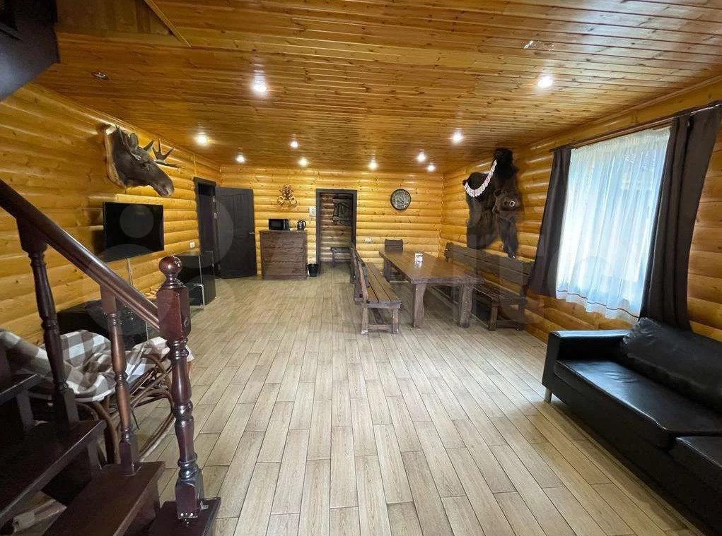 Следующий пример из категории суперлюкс. Двое суток отдыха в нем обойдутся в 170 тысяч рублей за компанию до 20 человек. Тут 17 спальных мест, баня, караоке, игровая приставка и своя парковка.