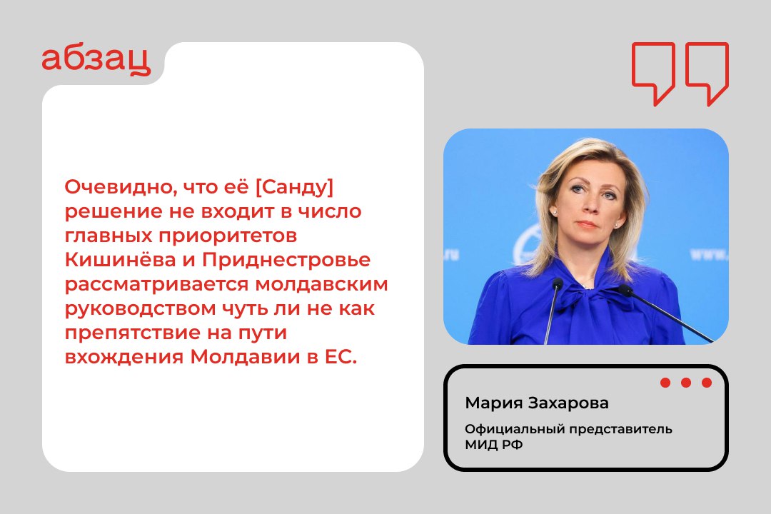 Официальный представитель МИД РФ Мария Захарова заявила о сомнительных приоритетах Майи Санду: