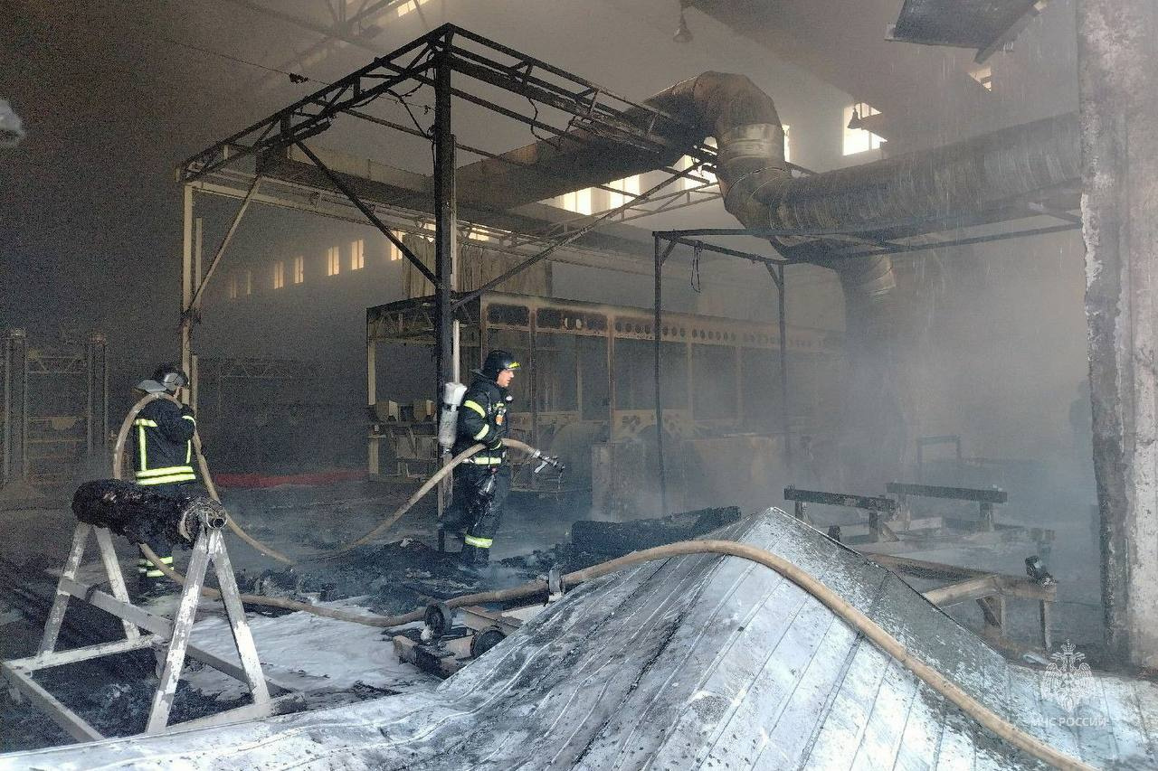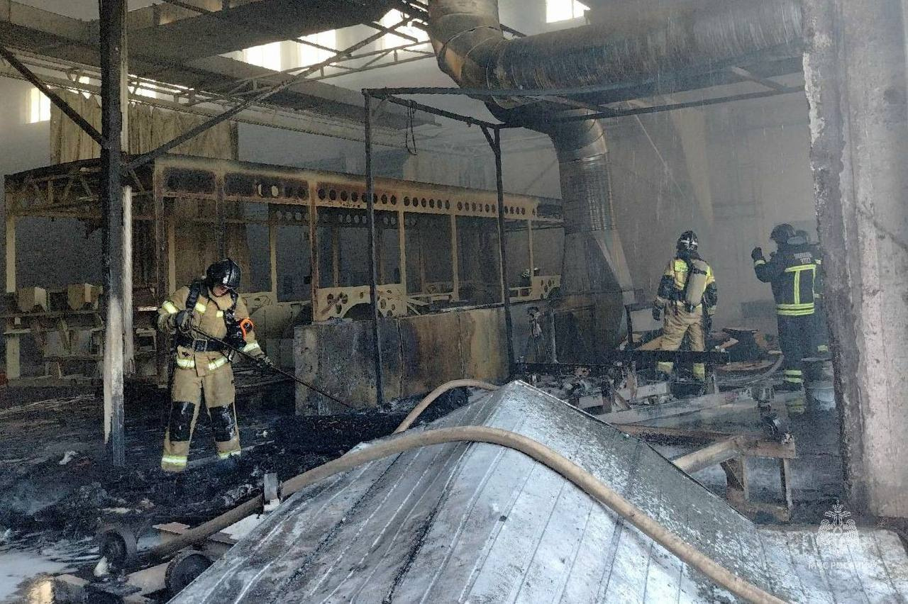 В Челябинске загорелся цех по производству троллейбусов. Огонь охватил 350 квадратов