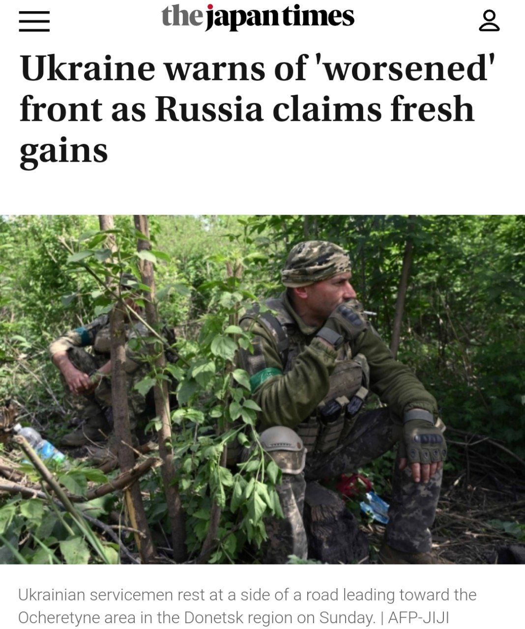 "Нам сказали не брать лопаты, а оставаться и ждать приказов. Русские наступают и продвигаются вперёд", – прокомментировал ситуацию один из украинских военных корреспонденту Japan Times.