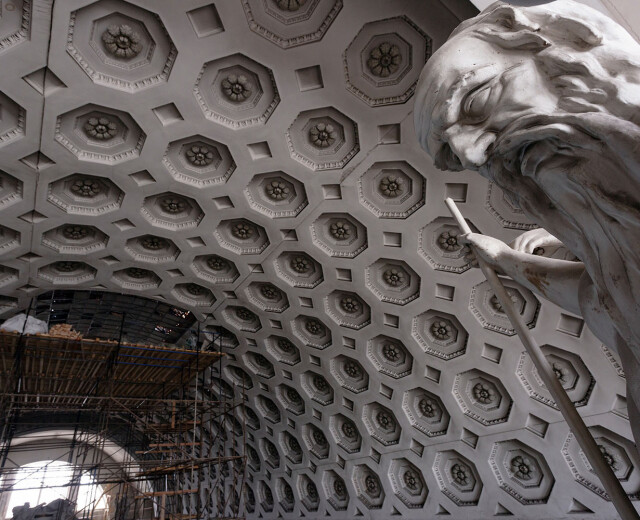 Сегодня зданию Биржи под опекой Эрмитажа возвращают былое великолепие: серо-голубой исторический цвет, ступени из гранита рапакиви и статуи морских божеств Жозефа Камберлена. Отремонтировали кровлю: родные сосновые стропила, которым 207 лет, уцелели. Еще предстоит отреставрировать интерьеры и заменить внутренние коммуникации. После завершения работ в памятнике классицизма откроют Музей геральдики. Ждем с нетерпением!