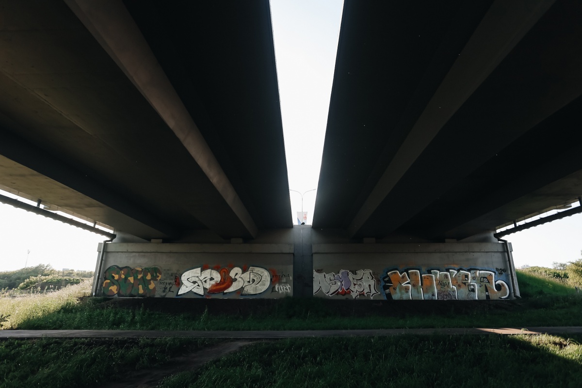 Мостовая конструкция через Мелекеску, которая была открыта после глобального ремонта три года назад, изрисована запретными граффити. Под мостом практически не осталось «живого» места, которое не тронула бы рука вандала. Здесь и объявления о наркотиках, и призывы с разжиганием межнациональной розни, и матерные надписи.