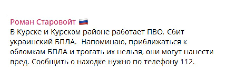 ❗️Система ПВО сбила беспилотник над Курском и Курским районом Приближаться к обломкам БПЛА и трогать их нельзя, они могут нанести вред, сообщил губернатор Роман Старовойт. Подписывайтесь на «Абзац»