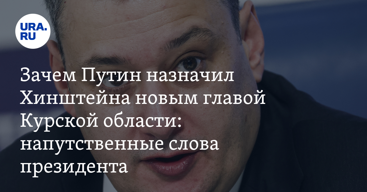 Президент России Владимир Путин 6 декабря назначил на пост врио губернатора Курской области депутата Госдумы Александра Хинштейна. На этом посту он сменил Алексея Смирнова, который ушел по собственному желанию. Какие поручения дал президент Хинштейну в качестве руководителя региона и какова реакция на его назначение — в материале URA.RU.