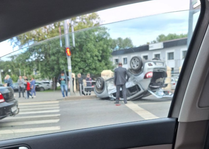 Авария с переворотом случилась на пересечении Комсомольского и Свердловского проспектов в Челябинске. Об этом в субботу, 10 августа, сообщили в городской Госавтоинспекции.