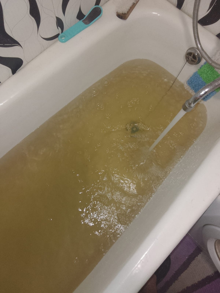 — В разных частях города вода была разная. Где-то из кранов бежала желтая, где-то — белая с песком, у кого-то из жителей бежала коричневая, — рассказывает Наталья. — Причем могло быть так: одну неделю одна грязная вода, через неделю уже другая грязь. Или, бывает, сначала бежит нормального цвета, а через несколько минут уже коричневая. Спускаешь воду, а от нее на дне и стенах ванны жирный масляный осадок. И всегда этот резкий запах падали, ни один кондиционер не мог его победить. Люди писали в соцсетях, как безуспешно пытались перебить его средствами, отдушками.