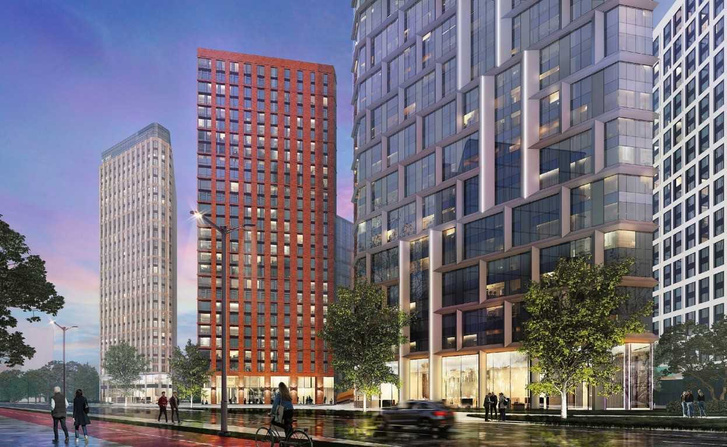 ЖК назвали «Никольский» — в честь улицы, которая была тут раньше. Проект состоит из семи башен-призм на 26, 28 и 30 этажей. В двух первых будет 385 квартир с вариантами планировок от 45 до 195 квадратных метров, на последних этажах оборудуют открытые террасы.