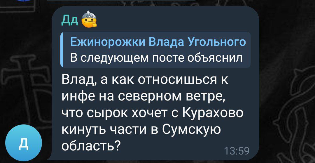 Ну и плюс им надо севернее Очеретино резервы высрать, иначе мы их пронесем.