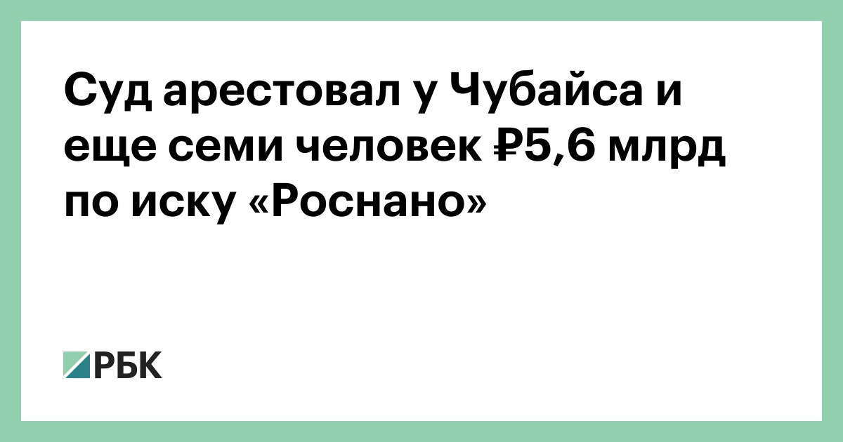 Арбитражный суд Москвы наложил арест на деньги и имущество Анатолия Чубайса и еще семи ответчиков в размере 5,6 млрд руб. по иску «Роснано», говорится в определении суда.